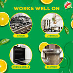 Looking for an effective solution to completely remove stubborn burnt stains? Introducing Vim 100% Burnt Stain Remover Spray, the ultimate solution to get rid of those stubborn, encrusted burnt stains on your utensils, ovens, grills, stove-tops, and chimneys. Formulated with the power of Lemon + Vinegar (Power refers to cleaning benefit of Lemon & Vinegar), it removes 100% burnt stains (subject to 5 minutes of contact time). The powerful spray works like magic – its unique foaming trigger helps spread the formula across gritty burnt stains, melting the stains away, all without the need of that unending and tiresome scrubbing. You can now enjoy spotless & shiny utensils, ovens, grills, stovetops, and chimneys without breaking a sweat. It is ready to use and is very easy to apply. Just spray directly on-to the surface till burnt stains are completely covered, leave to work for just 5 minutes for the formula to dislodge and remove burnt-on stain particles, and simply rinse to get new-like shine. Try Vim 100% Burnt Stain Remover Spray today and experience the magic for yourself. It's a game-changer for anyone who wants to keep their utensils, ovens, grills, stove-tops and chimneys free from carbonaceous burnt-stains, and simply at their shiny best.