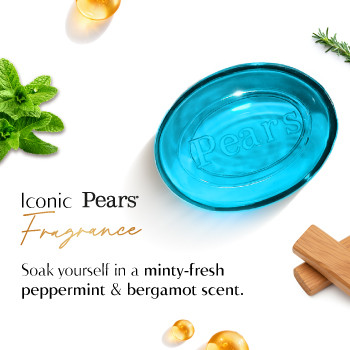 Pears Soft & Fresh Glow Bathing Bar brings over 200 years of trusted skincare heritage in every transparent bar. Crafted with 98% Pure Plant-Based Glycerin & Mint Extract, it delivers a gentle, hydrating cleanse that leaves your skin feeling soft, fresh, & glowing. If you’re looking for a Fresh Glow, Pears is your perfect daily companion. The hydrating glycerin helps hold moisture & leaves your face looking fresh & glowing, everyday. This iconic bar is so pure, you can see through it. Its mild, plant-based cleanser contains 0% parabens & & is suitable for all skin types—including normal, dry, & combination skin. Loved by generations, Pears is known for its purity, transparency, & skin-loving ingredients. Skin that looks hydrated, glows. Pears Bathing Bar is designed with ingredient known to help hold moisture—making it unique than just a regular soap. Take Pears Bar onto your wet hands & rub hands to a gentle lather. Work into a light, hydrating lather & then gently apply over your face & body before rinsing thoroughly with water. Experience the iconic Pears fragrance. A minty-fresh peppermint & bergamot scent that lingers gently on your skin. Complete your skincare routine with the Pears Glow Range, featuring soap-free, pH-balanced body washes designed for soft, glowing skin. Choose Pears, where Beauty, Heritage, & Innovation meet.