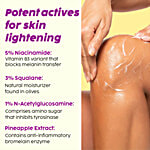 Aqua, Propanediol, Coco-Caprylate/Coprore Niacinamide, Cetearyl Olivate (and) Sorbitan Olivore, Sodium Acrylates Copolymer, Lecithin, Squalane, Acetyl Glucosamine, Ananas sativus (Pineapple) Fruit Extract, Saccharide isomerate Citric Acid, Sodium Citrate, Glyceryl Stearate, Benzyl Alcohol, Dehydroacetic Acid, Sodium Gluconate, Aroma. Ct. 1940
