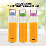 Borosil Neo Glass Bottle - Husk Green Lid, 1 L