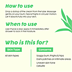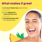 Say hello to this 3-in-1 bum-thighs-hips brightening, tightening & smoothening cream! Formulated to help you achieve a firm & smoother intimate area. This innovative formula combines actives like 3% Kojic Acid, Glutathione & PEPHA®-TIGHT with pineapple extract. These promising ingredients help to deliver a safe experience for your delicate sensitive areas by nourishing & hydrating them to prevent rashes or dryness. This creamy pineapple polish featherlight, fast absorbing & does not leave any sticky residues. With consistent use, you may notice a reduction in sagginess & cellulite, revealing a firmer & more toned appearance for your bum, thighs & hips. Don't settle for short-term fixes when you can achieve lasting results! 3% Kojic Acid aim to reduce melanin production to brighten your skin. Glutathione, a potent antioxidant helps in promoting collagen production to improve skin elasticity & plump up your skin. You may notice how your skin appears smoother & more even-toned with consistent usage.