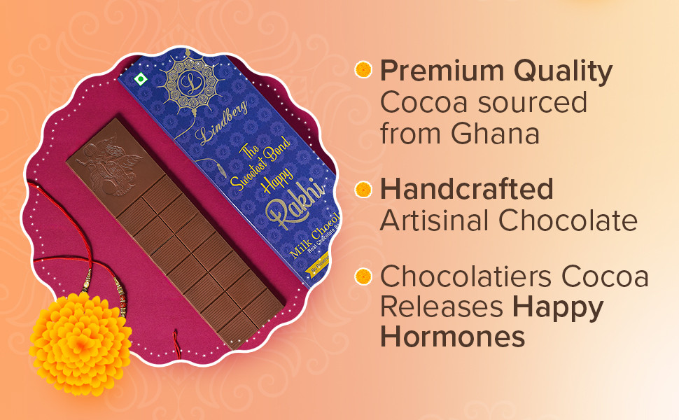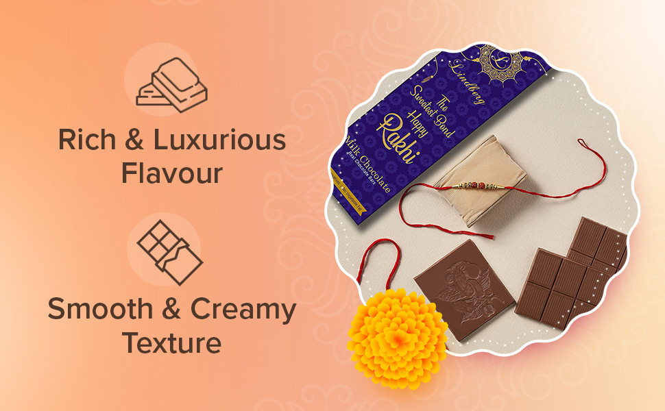 About the ProductCelebrate the bond of sibling love this Raksha Bandhan with the delightful Lindberg Milk Chocolate Bar. Made with the finest quality ingredients, this scrumptious chocolate bar is a perfect way to express your affection and make the day even more special for your siblings. Enjoy the smooth and creamy taste of milk chocolate that melts in your mouth, leaving you with a sense of joy and nostalgia. Share this delectable treat with your loved ones and create cherished memories together. Let Lindberg be a part of your Raksha Bandhan celebrations, spreading sweetness and happiness all around.