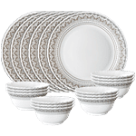 Larah by Borosil Classic Fluted Series Opalware Thali Set - White, 18 pcs