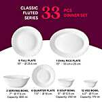Larah by Borosil Classic Fluted Series Opalware Dinner Set - White, 33 pcs
