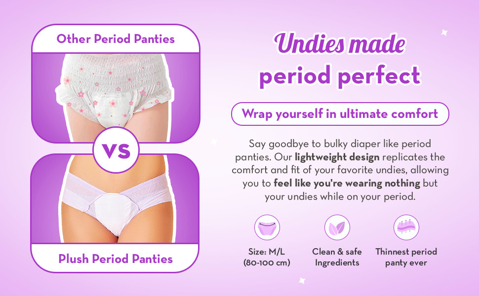 Plush Disposable Period Panties, which offer 360-degree protection and comfort during your periods, are made up of cotton and are kinder to the skin and the planet. Designed to effectively absorb menstrual flow and prevent leaks, these period panties instil a sense of security and peace of mind for those who wear them. They are particularly ideal for women with heavy flow, offering reliable protection throughout the day and night, ensuring no leaks or stains disrupt your activities or sleep.