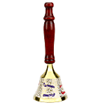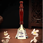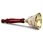 Mandir Bell With Wooden Stand - White The sweet sound of this brass bell will fill the atmosphere with divine sound during any pooja/ceremony One beautiful brass handbell produces a nice smooth sound and a polished brass handle to hold it easily. Puja bells are very important for puja occasions. Bell ringing during prayer is said to help in controlling the ever-wandering mind and focusing on the deity. This bell is very attractive and worth purchasing for personal use or for gifting purposes. Easy to Use and Clean.