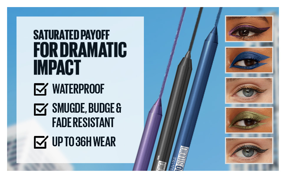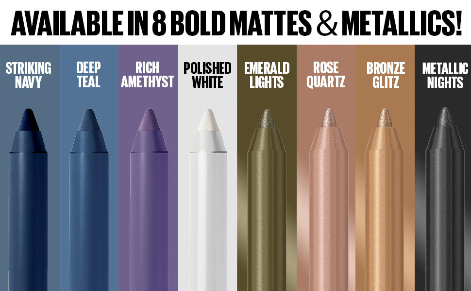 Delivering smooth strokes and intense colour, this waterproof eyeliner glides on seamlessly for long-lasting wear! This sharpenable pencil eyeliner delivers pigment-rich hues, precise definition, and an up to 36-hour wear that lasts from day to night and beyond. From striking blues to bright white eyeliner looks, and every brilliant shade in between, this collection has a perfect shade for your every mood. Now available in metallic and matte eyeliner shades. Waterproof, smudge resistant, fade resistant, and sebum resistant.