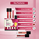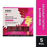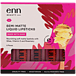 Indulge in lip-smacking goodness with our semi-matte liquid lipsticks that come in 5 stunning shades: Sangria Red, Cosmo Pink, Peach Punch, Mocha Martini & Berry Vodka, carefully crafted with the goodness of Ghee, Vitamin E, and Rosemary. Experience luxurious, highly pigmented, long-lasting colour with a velvety semi-matte finish. Ghee in these lipsticks provide intense hydration, nourishing your lips for a smooth and supple feel. Vitamin E and Rosemary offer antioxidant properties, protecting against environmental damage. Enjoy comfortable wear, 12-hour coverage and vibrant shades that enhance your natural pout. Embrace luscious lips with our lipsticks that combine nourishment, style, and elegance.