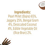 Pearl Millet (Bajra) 65%, Jaggery 25%, Bengal Gram 4%, Desiccated Coconut 4%, Edible Vegetable Oil (Rice Bran) 2%.
