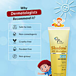 Fixderma Shadow Kids SPF 30+ Lotion is specially developed for children's delicate skin. Made with the blend of the safest sun protectors, this lotion protects the skin from the harmful effects of UV rays. The formulation is free from all types of harsh ingredients to suit the tender skin of children. This ultra-light lotion can be applied to any part of the body without causing any whiteness or greasiness. SPF 30 helps protect the child's delicate skin against harsh UV rays. Zinc oxide, Niacinamide and Vitamin E help form a protective barrier on the child's skin. Skin stays moisturised, smooth and safe from the sun. Its non-allergic, non-greasy, non-irritant and lightweight formulation spreads evenly and gets absorbed quickly to form a protective shield over the exposed skin to save it from strong sunlight and its harmful UVA and UVB rays.