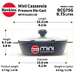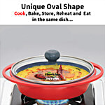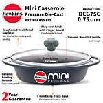 0.75 Litre Pressure Die-cast - Ideal for one or two persons. Grey Food-grade special nonstick Ceramic Inside - Not spoilt by high heat; metal spoon friendly; scratch and stain resistant. Outside vibrant Ceramic Red/Yellow/Grey - Stain-free, long-lasting lustre. Can cook on Gas, Electric, Ceramic, Halogen cooktops - Ideal for reheating and cooking small portions. Bake in an oven - Metal body and coating not spoilt by high heat. Serve elegantly - Cook, Bake, Serve in the same dish. Die casting is a metal casting process, whereby metal is heated to a very high temperature and poured under high pressure into a mould cavity. The molten metal takes the shape of the mould and the result is a complex, intricately designed pot or pan which adds the metal where it is needed the most, building strength and functionality. Once the molten metal hardens, the mould is opened and the die-cast pan is removed. It is then finished by a long lasting ceramic nonstick coating on the inside and ceramic coating on the outside. The final result is a finely engineered piece of cookware with wonderful properties for cooking. It can be used for cooking, reheating food, serving and storing. It has a Toughened heat-proof Glass Lid so that you can see food while cooking and serving. Glass lid speeds up cooking, tenderises food and enhances flavours. Each piece is securely packed in an attractive carton and is ideal for Gifting. It is suitable for - Pulao, Khichdi, Fried Rice, Bhurji (egg/paneer), Dal Fry, Curries (vegetables, paneer, seafood, eggs, chicken), Baking (vegetables, chicken, breads, cakes, Canneloni, Enchiladas, Lasagna). Can be used on gas, electric, ceramic and halogen.