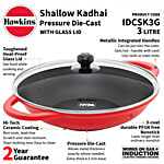 No Question askedHawkins Shallow Kadhai Pressure Die Cast - With Glass Lid, Red, IDCSK3G