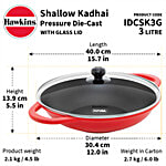 Hawkins Shallow Kadhai Pressure Die Cast - With Glass Lid, Red, IDCSK3G, 3 L