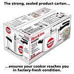 Ideal for 5 to 7 Persons. Made from pure virgin aluminium, the exterior mirror is polished. New improved 4.06 mm thick Induction Base. Super-fast cooking. Efficient Pressure Regulator cooks faster - Saves more fuel. Inside-fitting safety lid will not open until the pressure falls. The Classic is Hawkins's largest-selling, most popular range of pressure cookers – perhaps because of its attractive combination of features, benefits and price. Each Hawkins Classic features an inside-fitting lid. This design is inherently safer than conventional cookers. Thus Hawkins Classic pressure cooker is pressure-locked for safety – like a jetliner door! This range was the first to be introduced by Hawkins and has been kept fresh and current by numerous innovations and improvements over the years. The latest improvement is a 4.06 mm new improved induction base and a superior pressure regulating system that controls pressure to a narrower, more efficient range, reduces sprouting of frothy foods (such as dal) and is easier to insert and remove. The safety valve is located under the lid handle bar so that when it operates the steam is safely deflected downwards. The gasket has minimum exposure to steam inside the cooker, and does not rub every time the product is opened and closed – so lasts longer. Stay-cool handles. Fixed sturdy pivot does not put pressure on the plastic handles as it is a part of the metal handle itself. Thus handles last longer. Recommended for use on gas, electric, halogen, ceramic and induction cooktops.