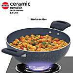 Hawkins Ceramic Nonstick Deep Kadhai - Grey, ICK25, 2.5 l