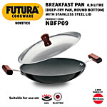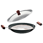 Protective Hard Anodising - Will not tarnish or corrode. Stays looking new for years. Rosewood Handles - Stay-Cool, Natural, Durable. Comfortable to hold. German Nonstick on Hard Anodised Surface - Lasts longer. Stainless Steel Brackets and Rivets - Firmly Fixed. Will not loosen. A versatile breakfast pan for stir-frying, steaming, deep-frying and re-heating. The Pan has a round bottom for greater convenience during stir-frying. Futura Nonstick Breakfast Pans are distinguished by elegant, comfortable rosewood handles fixed on sturdy stainless steel brackets which are permanently riveted to the pans. The handles are carefully designed to provide greater comfort and safety, particularly when handling hot foods. The cooking surface is made of PFOA-free with a unique patented process by which high quality nonstick coating (made in Germany) is locked firmly into the tough Hard Anodised surface underneath. Therefore, the nonstick, if used properly, would last longer than the ordinary nonstick. The pans have curved sides suitable for deep-frying and stir-frying. The pans are offered with a Round Bottom for greater convenience during stir-frying and ideal for use on domestic gas stoves or radiant electric cooktops. Perfect for Appam (Rice and Coconut Milk Pancakes), Firni (Milk and Ground Rice Pudding), Bengal Fish Curry, Stir-Fried Bean Sprouts and Vegetables, Samosa (Savoury Stuffed Pastries, Egg Curry and Kadai Masala Chicken (Spicy Stir-Fried Chicken)