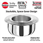 Hawkins Tri-Ply Stainless Steel Induction Compatible Metro Patila - With Lid, SSP30S, 3 L