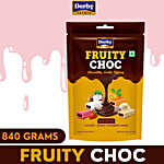 DERBY Premia Fruity Choco Center Filled Toffees, Assorted - Coconut, Orange, Strawberry, Vanilla, 840 g
