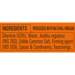 Gherkins (53%), Water, Acidty Regulator (INS 260), Edible Common Salt, Firming Agent (INS 509), Spices & condiments, Seasonings.