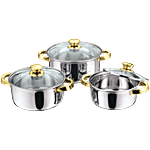 No Question askedKitchen Essentials Steel Casserole Set - With Glass Lid, Rose Gold, 14 cm+16 cm+18 cm