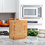 Experience top-tier quality with our Export Quality Chopping Board set, meticulously crafted from 100% natural bamboo, a sustainable and eco-friendly choice. This set includes two boards tailored for distinct purposes, with ample space for easy meal preparation. Each board is laser-marked for versatile use, ensuring precision in your culinary adventures. Treated with USDA-approved oil for added protection, these boards come complete with a stand for convenient storage. Elevate your kitchen with this premium bamboo Chopping Board set, an embodiment of functionality, sustainability, and practicality, designed to meet your culinary needs with finesse.
