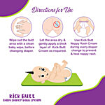 Step 1 Wipe out the butt area with a clean baby wipes,before changing diaper. Step 2 let the area dry & gently apply baby a thick layer of kick butt cream as required, Step 3 Use Kick Butt Nappy Rash Cream during every diaper change to prevent & heal nappy rash.