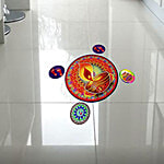 Creative Space Diwali Rangoli Sticker - For Floor/Door/Pooja Room, Multicoloured, Paper, 2 pcs