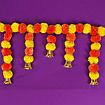 No Question askedHouse of Festivals Toran/Mala/Bandhanwar Marigold - Red & Lemon Yellow Flowers, With Bells, Central Toran, 92 cm