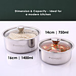 Wonderchef Casserole Set - With Lid, For Parathas, Rice, Soups, 2 pcs (1.4 l, 750 ml)