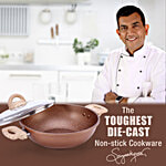 Wonderchef Kadhai With Lid - Duramax Non-Stick Coating, Soft Touch Handles, 24 cm, 2.5 l