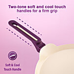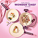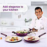Introducing a culinary revolution that harmonizes exceptional cooking performance with environmental responsibility: Bellagio Healthy Non-stick Ceramic Cookware Set. Crafted with ingredients naturally extracted from sand, this cookware set is healthy for your family and safe for the environment! Elevate your cooking experience with the perfect blend of innovation, convenience, and planet-friendly materials, making each dish a step towards a greener tomorrow. Bellagio's healthy non-stick cookware set is made from virgin aluminium, which is a 9 times better conductor of heat compared to stainless steel; thus enabling you to cook evenly and quickly. The non-stick ceramic coating is made from ingredients naturally extracted from sand, which makes it safe for your loved ones, and good for the environment. The healthy ceramic coating is free from PFAS & PFOA, any heavy metals and nickel; avoiding chemicals which will last in the environment for a long time. The cookware is 3mm thick, hence durable, long-lasting and the ideal weight in your hand. The ergonomically designed two-tone soft touch handles and knob provide a firm grip, do not heat up while cooking and are a delight to hold. The set includes a 24 cm fry pan, a 24 cm wok with a tempered glass lid and a 28 cm dosa tawa. Bellagio pans are suitable for use on gas stoves, ceramic plates, hobs, hot plates, infrared and induction plates. The cookware set comes in 2 colours – deep purple and electric blue, adding a touch of elegance and appeal to your kitchen. Wonderchef products are inspired by Italian designs and adhere to German quality standards. They come with a reliable Wonderchef warranty.
