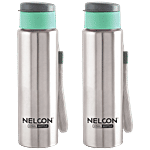 Nelcon Stainless Steel Fridge Water Bottle - Slim, Flip Top, 350 ml (Pack of 2)