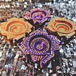 House of Festivals Swastik Shape Hand Work Crafted Mitti Diya/Clay Diya - Round Multicoloured
