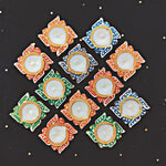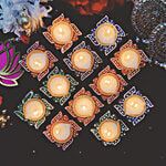 House of Festivals Swastik Shape Hand Crafted Clay/ Mitti Diya - With White Wax, Assorted Colour, 12 pcs
