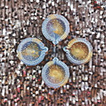 Beautifully crafted round terracotta diya in Ice blue & gold double shade made from clay. Clay diyas are symbolically lit during prayers, rituals, and ceremonies; they are permanent fixtures in homes and temples. The warm, bright glow emitted from a diya is considered auspicious, and regarded to represent enlightenment, prosperity, knowledge and wisdom.