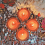 House of Festivals Handcrafted Mitti/Clay Diya - Round, Red & Gold Colour, Diwali Puja, Traditional, 191x191x38mm, 4 pcs