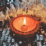 House of Festivals Handcrafted Mitti/Clay Diya - Round, Red & Gold Colour, Diwali Puja, Traditional, 191x191x38mm