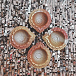 House of Festivals Handcrafted Double Shade Diya - Clay/Terracotta, Round, Gold & Red, 4 pcs