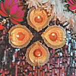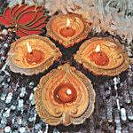 House of Festivals Leaf Shaped Clay /Miiti /Terracotta Diya - Gold, 4 pcs