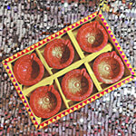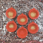 House of Festivals Handcrafted Double Shade Clay Diya/Mitti /Terracotta Diya - Round, Gold & Red, 6 pcs