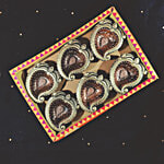 House of Festivals Diya Clay/Mitti/Terracotta Diya - Ambi Shape, Antique Look, Round, Golden, 6 pcs