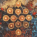 House of Festivals Handcrafted Golden Antique Clay Diya/Classic Mitti Diya, 12 pcs