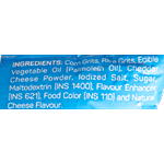 Corn Grits, Rice Grits, Edible Vegetable Oil (Palmolein Oil), Cheddar Cheese Powder, Iodized Salt, Sugar, Maltodextrin (Ins 1400), Flavour Enhancer (Ins 621), Food Color (Ins 110) And Natural Cheese Flavour.