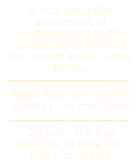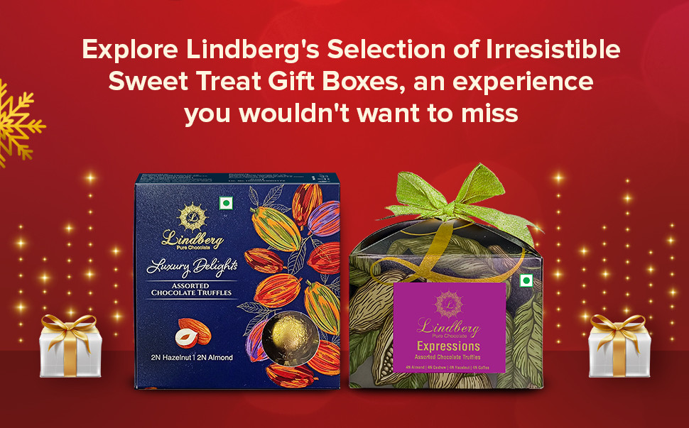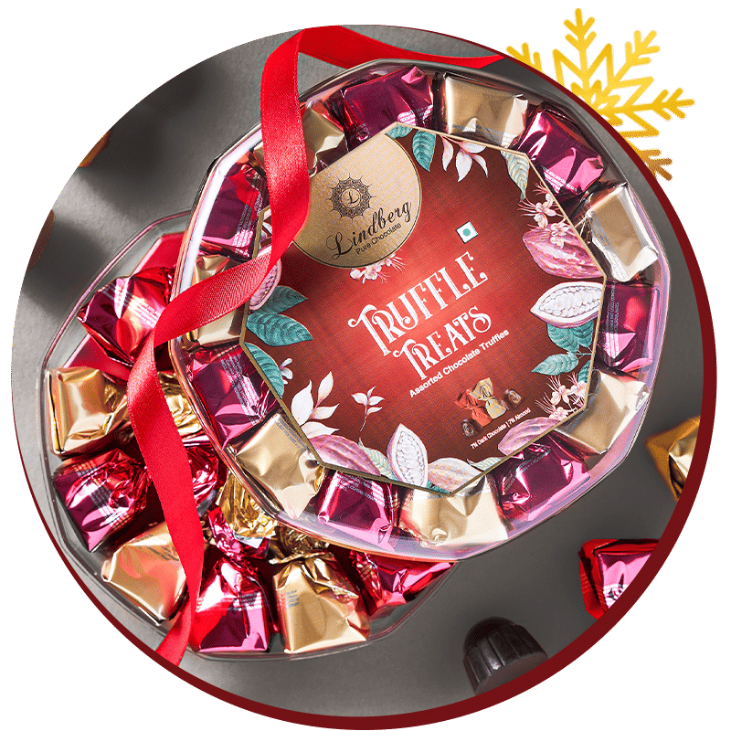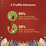 About the productDelight in Lindberg Truffle Treats Gift Box, a symphony of exquisite flavours. Revel in the intense allure of 55% dark chocolate with a velvety cream filling, offering a taste of pure indulgence. Complementing this, experience the silky smoothness of 35% milk chocolate infused with an almond filling, creating a delightful balance. This assorted collection, featuring two luxurious flavours, invites you to elevate your chocolate experience. Indulge in the perfect union of premium chocolates and sumptuous fillings, making each bite a moment of refined bliss. Lindberg Truffle Treats promises a decadent journey for discerning chocolate connoisseurs. This gift box contains a total of 14 chocolate truffles, featuring 7 pieces each of 55% Dark Chocolate with Cream Filling 35% Milk Chocolate with Almond Filling.