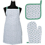 JBG Home Store Cotton Apron With Oven Mitt & Pot Holder - Green Blossom, 70cmx77cm, 3 pcs