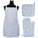 JBG Home Store Cotton Apron With Oven Mitt & Pot Holder - Multi Blossom, 70cmx77cm, 3 pcs