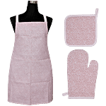 JBG Home Store Cotton Apron With Oven Mitt & Pot Holder - Pink Blossom, 70cmx77cm, 3 pcs