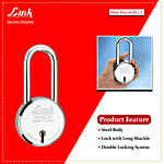 Link Round 65 mm Double Locking Padlock ensures superior security for your valuables. Crafted with precision, the robust design and double-locking mechanism provide enhanced protection. With durability and reliability at its core, this padlock comes with keys, offering peace of mind and trust in safeguarding your possessions. Security meets strength with Link.