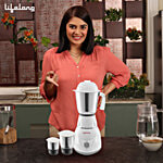 Lifelong Power Pro 500-Watt Mixer Grinder - With 3 Jars, Liquidizing, Wet Grinding & Chutney Jar, Stainless Steel Blades, 1 Year Warranty, White/Grey, LLMG45, 1 pc