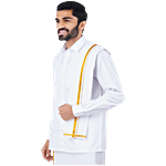 Ramraj Tejas Towel - White, Poly Cotton, Golden Jari Border 1.27 cm, 0.8 m x 1.75 m, 1 pc